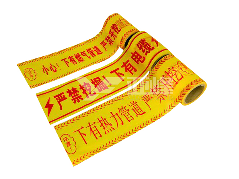 警示帶主要用于保護(hù)地下管道如電纜管 自來(lái)水管,煤氣管道,地下油管等,警示帶含有金屬可探測(cè)功能,可以讓施工人員正確探測(cè)到地下管道所處的位置,有效避免了施工錯(cuò)位所造成的管道破壞或損傷。